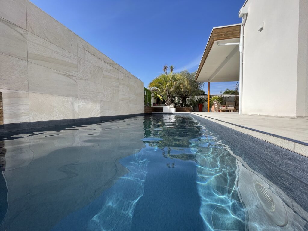 Piscines du Val de Leyre, spécialiste dans la conception et la construction de piscines sur le Bassin d’Arcachon, vient de finaliser un projet de piscine traditionnelle de type couloir de nage à dimensions impressionnantes de 10×3 mètres. Cette piscine est équipée d’une membrane armée 3D en gris foncé, offrant non seulement une robustesse inégalée mais aussi une esthétique moderne et élégante.